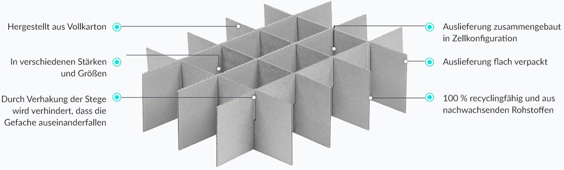 Herzlich Willkommen auf der Interseite von Heimann Kartonagen GmbH & Co. KG. Wir produzieren individuelle Innenverpackungen, auch Schlitzverpackungen, Gitterfacheinsätze oder Gitterstege genannt. Wir stellen diese Gitterfacheinsätze in verschiedenen Varianten, Größen und Farben nach Ihren Anforderungen her. Als Experten in der Herstellung von Gitterfacheinsätzen sind wir seit über 70 Jahren tätig.